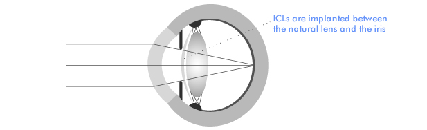 The ICL for high myopia (-8.00D and above) is a negative lens which acts to neutralise the excessive focussing power of the eye allowing clear vision in the distance.